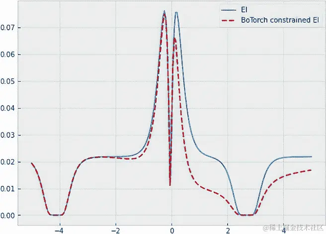 我们以与第八章相同的方式实现了受限 EI 策略,其中我们将