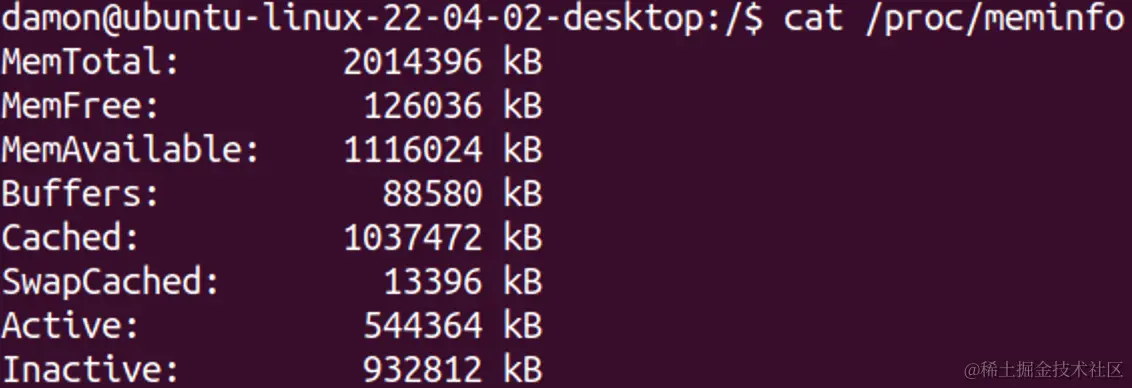 cat /proc/meminfo 命令的部分输出。