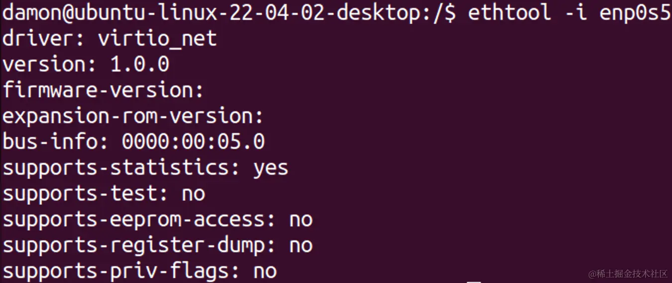 ethtool -i 命令显示网卡设备驱动程序的详细信息。