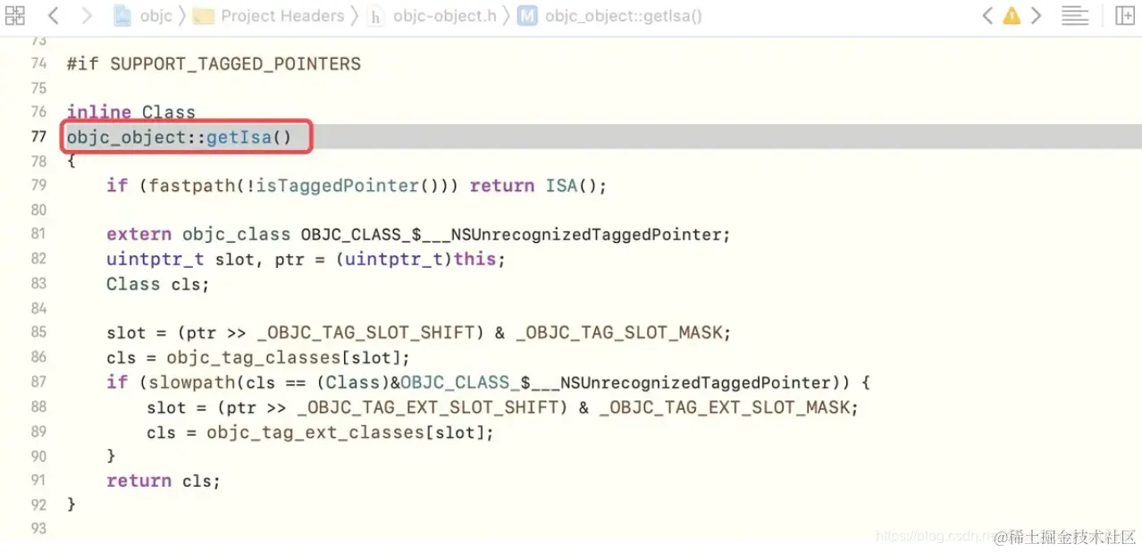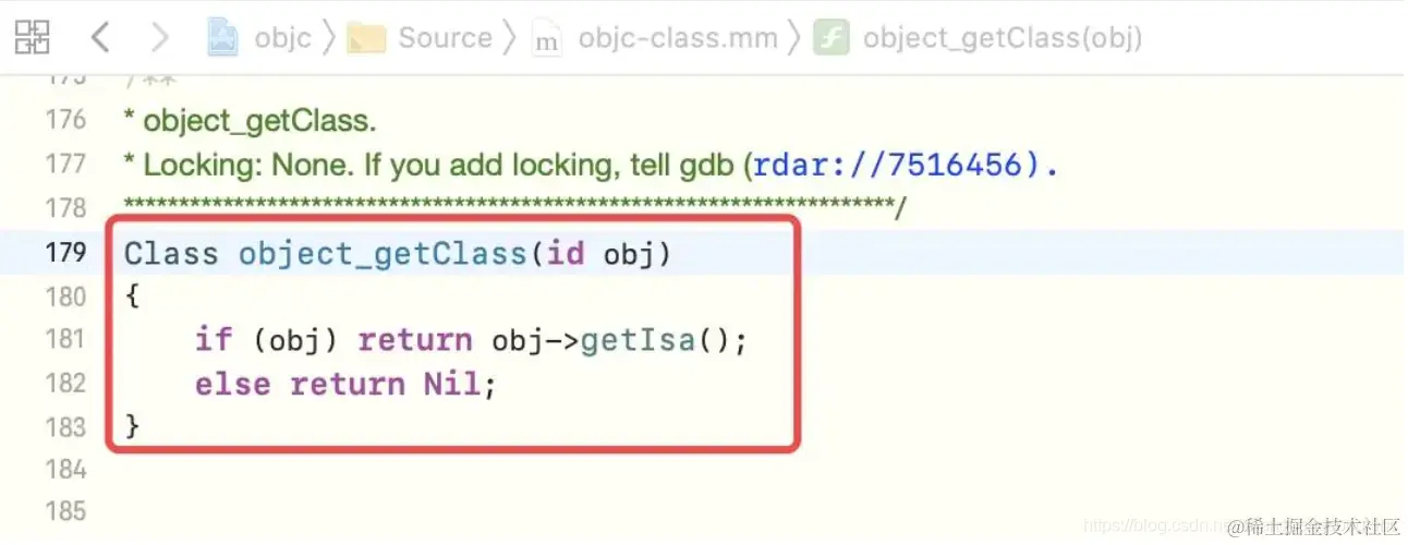 通过查看object_getClass的源码实现,同样可以验证isa与类关联的原理,有以下几步: