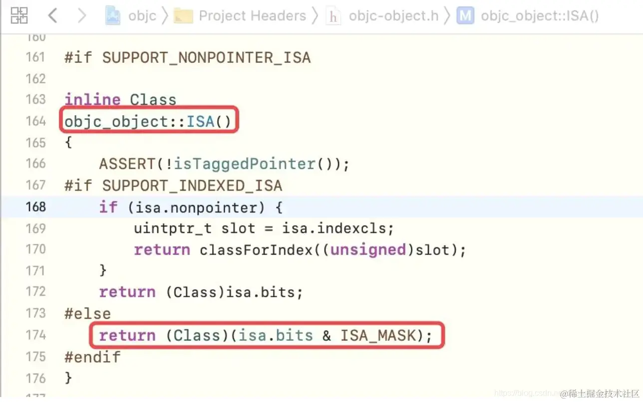 else流程中,拿到isa的bits这个位,再& ISA_MASK,这与方式二中的原理是一致的,获得当前的类信息 - 从这里也可以