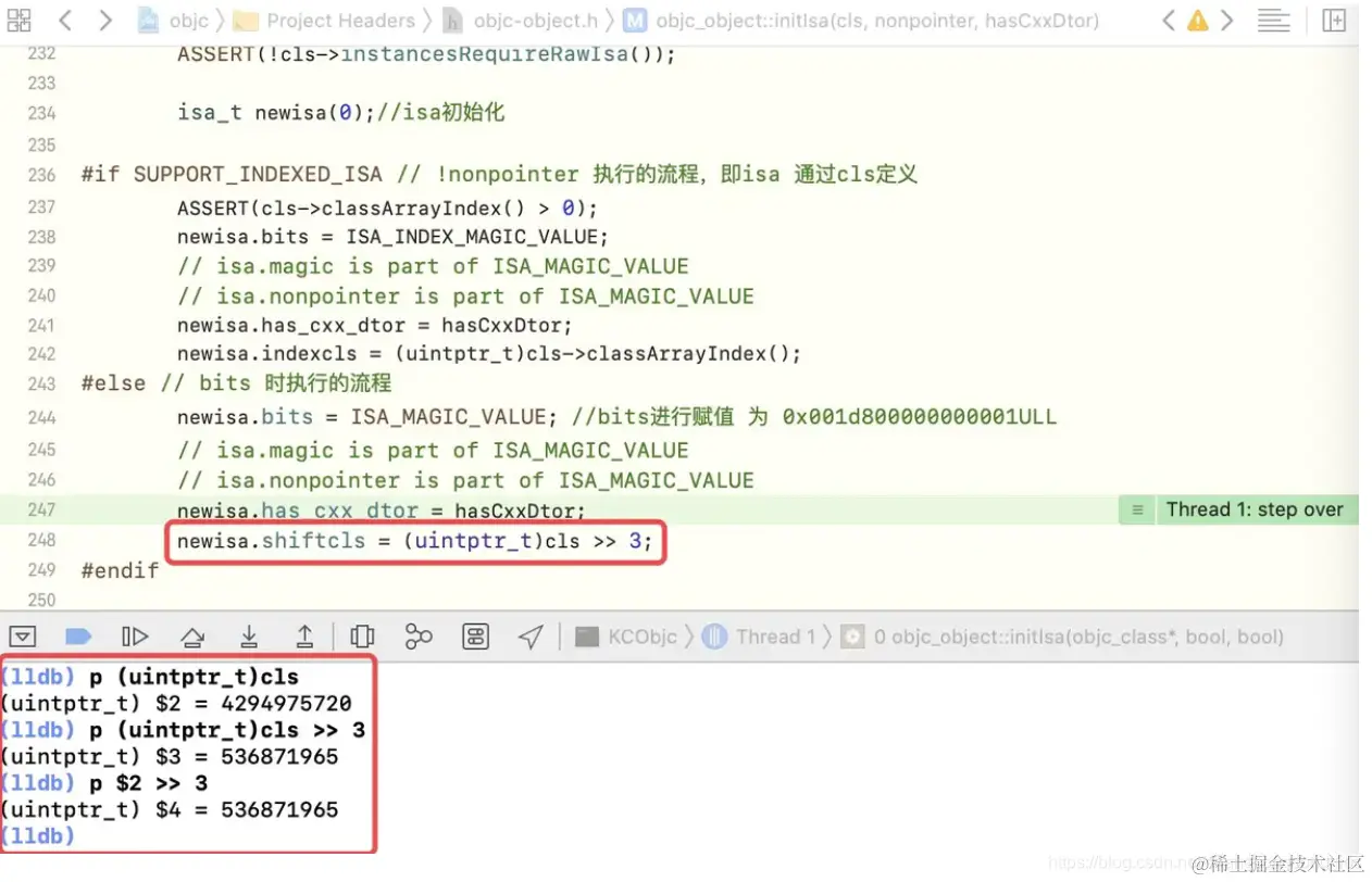 initIsa方法中的newisa.shiftcls = (uintptr_t)cls >> 3;验证 - 【方式二】通过