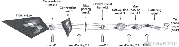 你可以将 convnet 看作是建立在卷积和池化预处理之上的 MLP。MLP 与我们在波士顿房屋和网络钓鱼问题中看到的完全相同:它仅由具有非线性激活的稠密层构成。在这里,convnet 的不同之处在于 MLP 的输入是级联 conv2d 和 maxPooling2d 层的输出。这些层专门设计用于图像输入,以从中提取有用的特征。这种架构是通过多年的神经网络研究发现的:它的准确性明显优于直接将图像的像素值馈入 MLP。