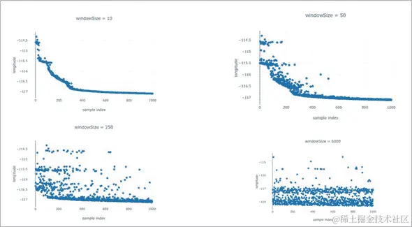 一般来说,你应该花时间确信你的数据符合你的预期。有许多工具可以帮助你做到这一点,从像 Observable、Jupyter、Kaggle Kernel 和 Colab 这样的笔记本,到图形界面工具如 Facets。在 Facets 中,看 图 6.6 ,还有另一种探索数据的方式。在这里,我们使用 Facets 的绘图功能,也就是 Facets Dive,来查看纽约州立大学(SUNY)数据集中的点。Facets Dive 允许用户从数据中选择列,并以自定义的方式直观地表达每个字段。在这里,我们使用下拉菜单将 Longitude1 字段用作点的 x 位置,将 Latitude1 字段用作点的 y 位置,将 City 字符串字段用作点的名称,并将 Undergraduate Enrollment 用作点的颜色。我们期望在二维平面上绘制的纬度和经度能揭示出纽约州的地图,而确实是我们所看到的。地图的正确性可以通过将其与 SUNY 的网页 www.suny.edu/attend/visi… 进行比较来验证。
