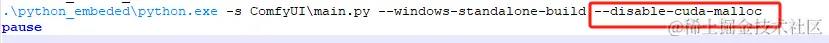 在run_nvidia_gpu.bat启动命令中加入--disable-cuda-malloc