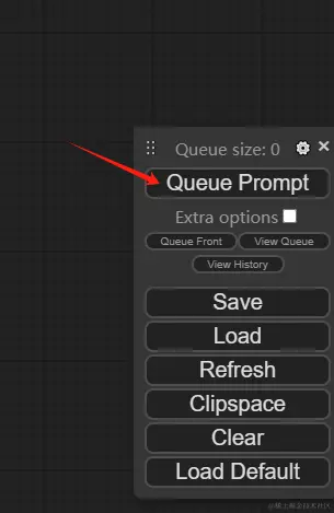 点击”queue prompt“ 即可生成图片