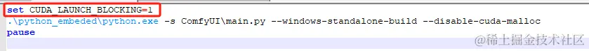 在run_nvidia_gpu.bat启动命令中加入set CUDA_LAUNCH_BLOCKING=1