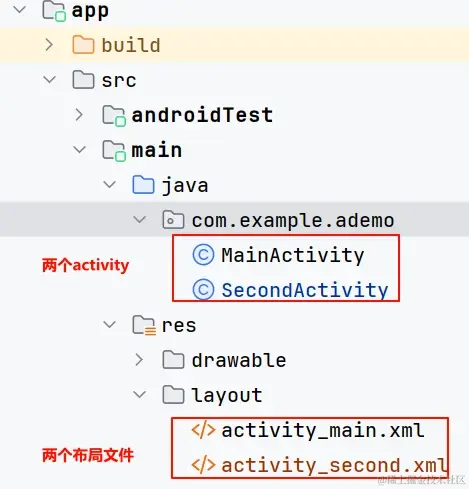 现在还是两个 activity 文件 和两个布局文件,代码分别如下