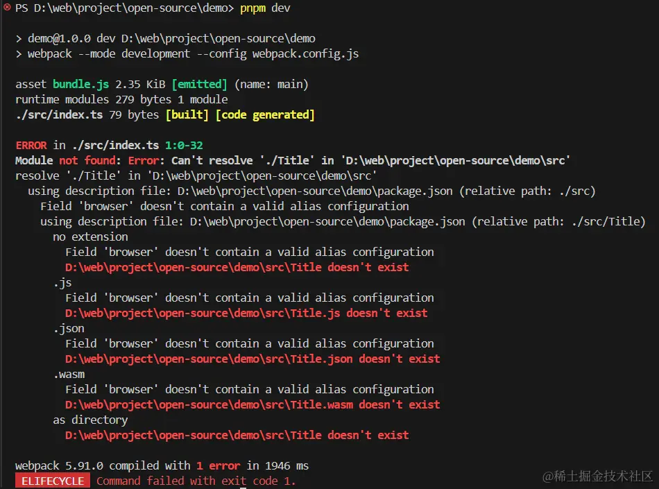 根目录下运行 pnpm i webpack webpack-cli -D