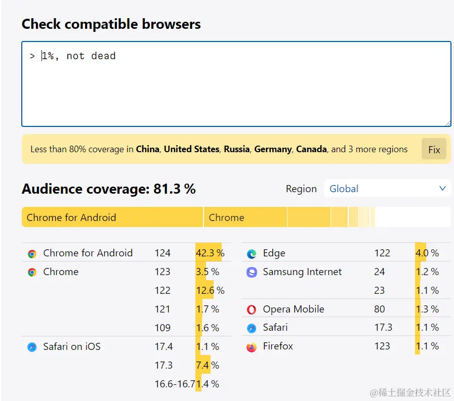 在 browserslist官网 中可以直观看到兼容范围: