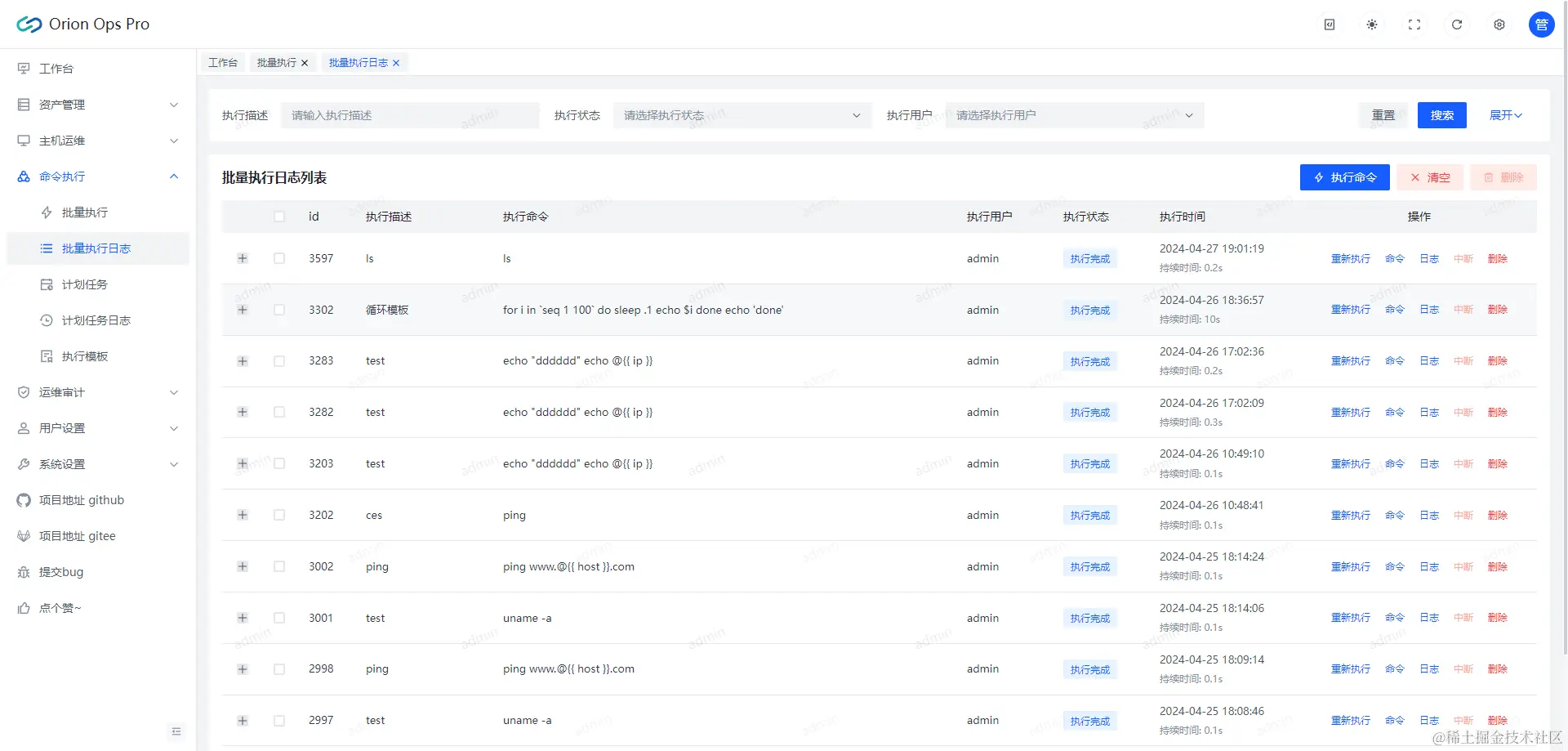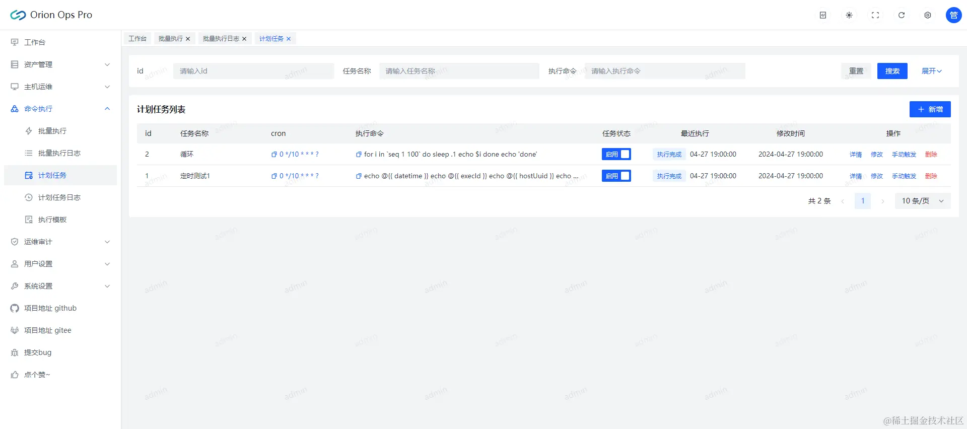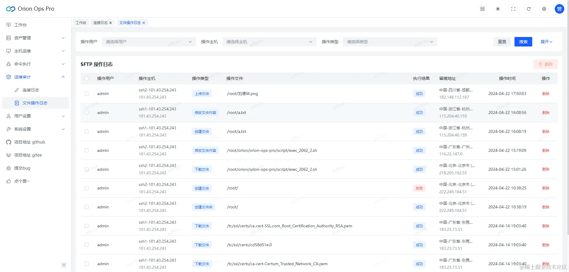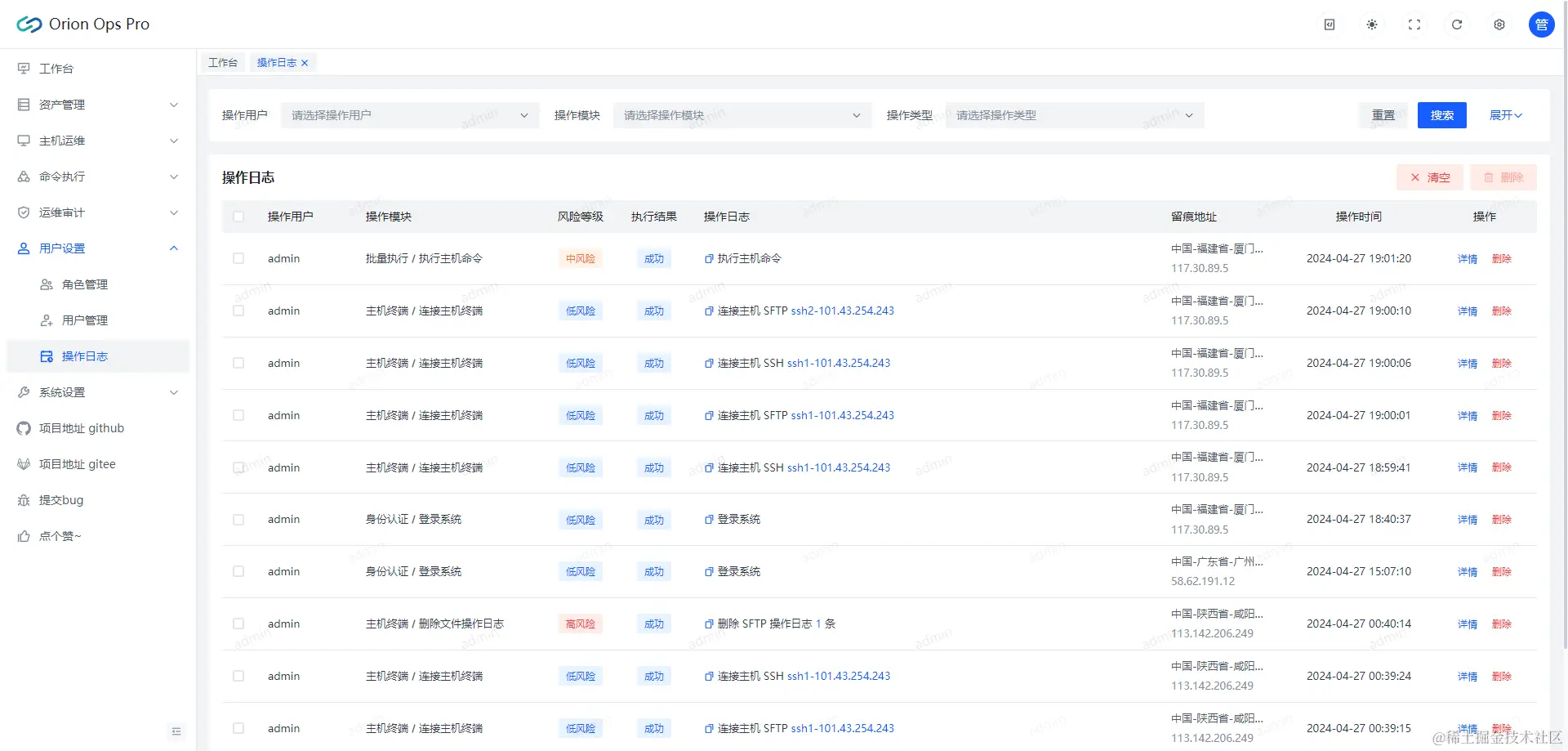 orion-ops-pro —— 一款现代化、高颜值的一站式智能运维管理平台,集资产管理、资产授权、批量执行、计划任务、WebShell、WebSftp、角色管理、系统管理等功能于一体,致力于简化运维团队的治理工作。