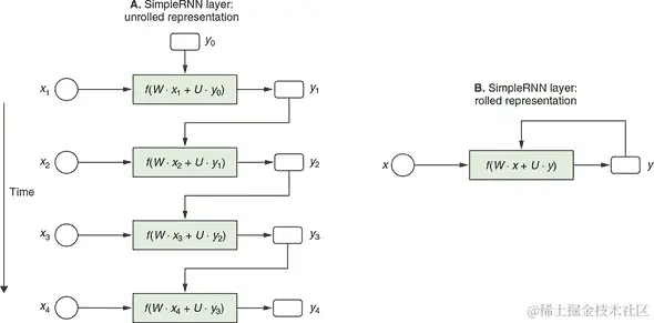 TensorFlow.js 提供了三种类型的 RNN:simpleRNN、GRU 和 LSTM。后两种类型比 simpleRNN 更复杂,因为它们使用更复杂的内部结构来使得能够在许多时间步骤中保持内存状态,从而缓解了梯度消失问题。GRU 的计算量比 LSTM 小。在大多数实际问题中,您可能希望使用 GRU 和 LSTM。