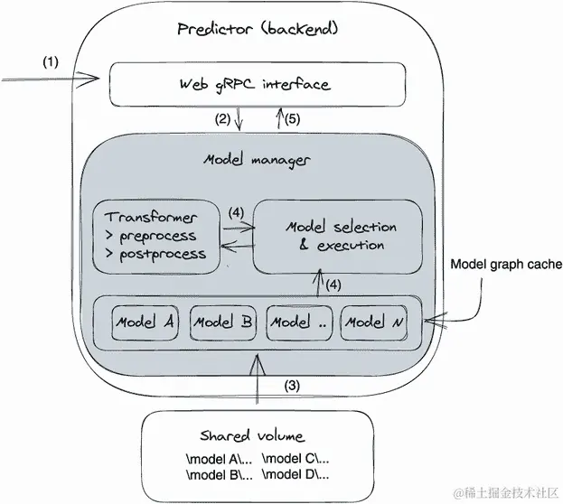预测器处理数据预处理,执行模型,执行后处理,并将结果返回给路由层。