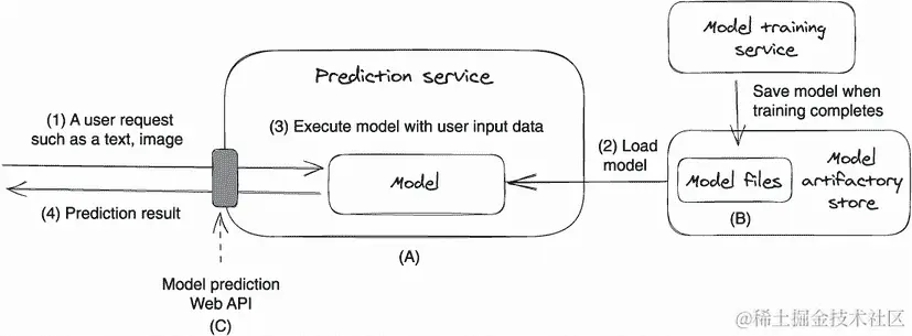 注意:所提出的发布工作流程并不是发布模型的唯一方法。模型发布方法高度依赖于公司内部的 DevOps 流程和预测服务设计,因此在这个主题上没有单一的最佳设计。我们希望通过阅读第 7.5 节中的问题分析和提出的解决方案,您可以得出适合您情况的模型发布流程。
