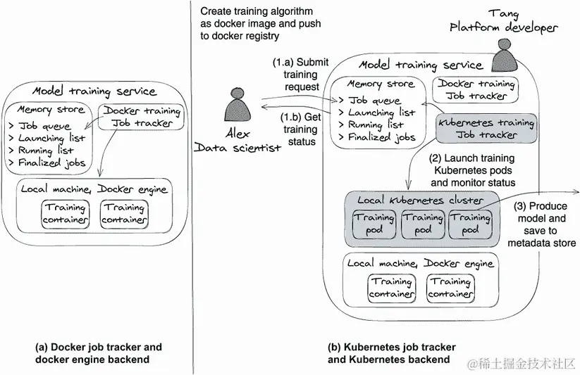 TensorFlow 和 PyTorch 框架都具有备份和恢复功能。 作为训练服务开发者,我们可以设置远程磁盘或备份存储系统,并将访问配置传递给训练容器。 然后,在训练过程中,训练代码可以使用外部文件系统来备份或恢复状态。