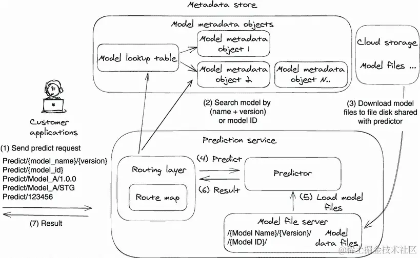 图 7.15 在带有元数据存储的预测服务中模型提供服务