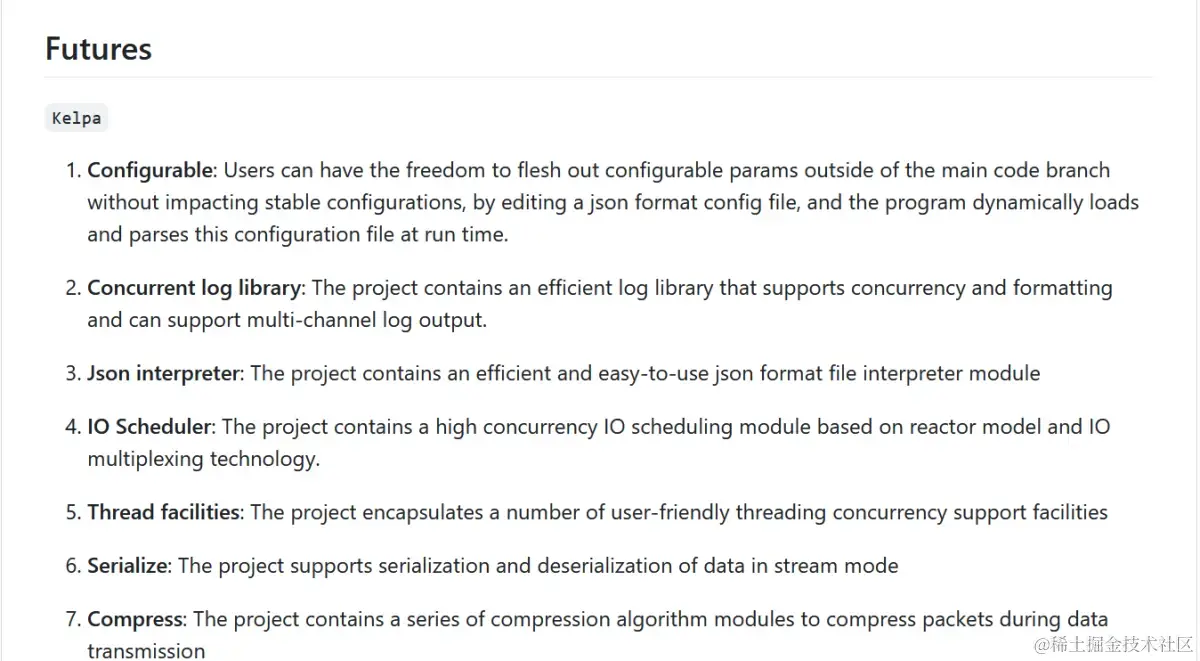 这是一个由现代C++编写的小型、学习性质的服务器框架,包含压缩,序列化,IO调度,Socket封装,文件配置,日志库等多个完整自研模块: