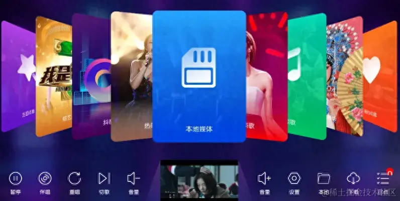 K歌时可以设置伴奏或原唱、调节音量、切歌、重唱等操作,