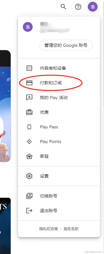②点开右上角头像,找到“付款和订阅”选项,点击进入