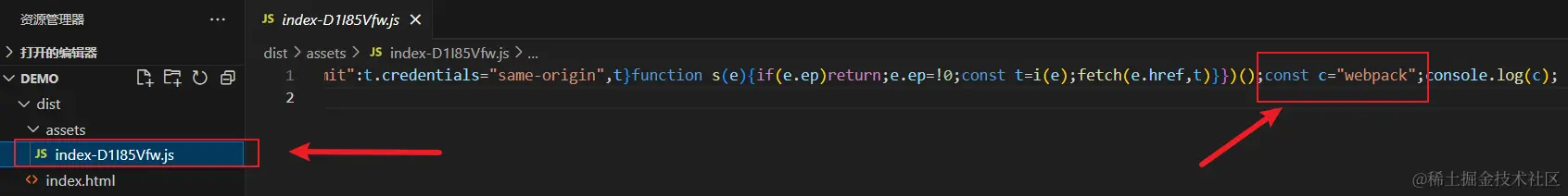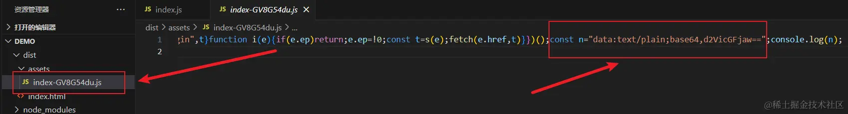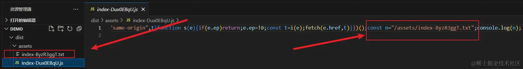运行pnpm build命令打包后,发现txt文件是以文本字符串的形式直接嵌入的。