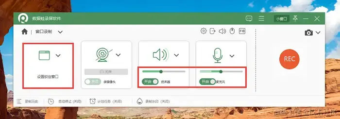 步骤2:在录窗口模式中,选择需要录制的直播窗口,然后对音频来源(麦克风与扬声器)进行调整,以满足你的录屏需求。