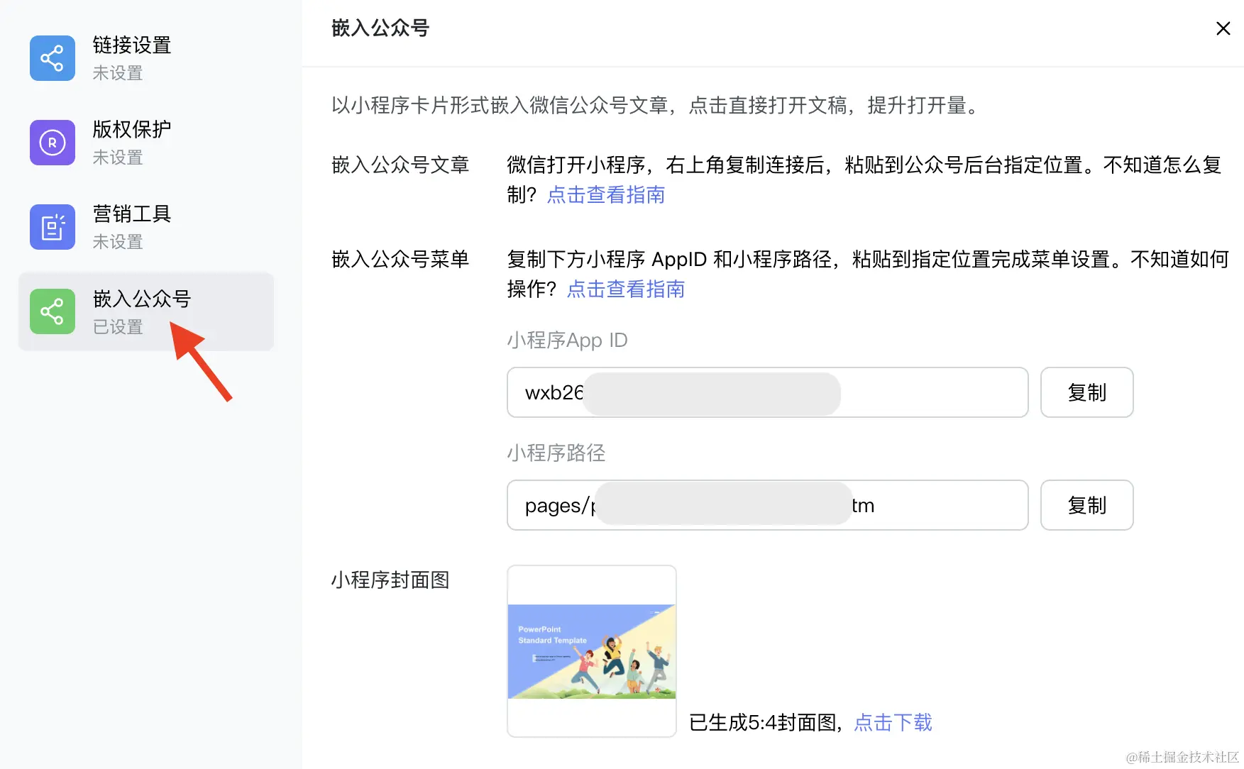 彩漩支持多种分享方式,可以通过链接、二维码或者小程序分享,还可以将文档嵌入公众号推文或菜****单中,实现更广泛的内容传播。(在「分享设置」-「嵌入公众号」可以查看具体操作步骤噢)