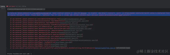 首先让我们来看看如果使用 Jackson 来对 Optional 数据类型进行序列化和反序列化中出现的问题。