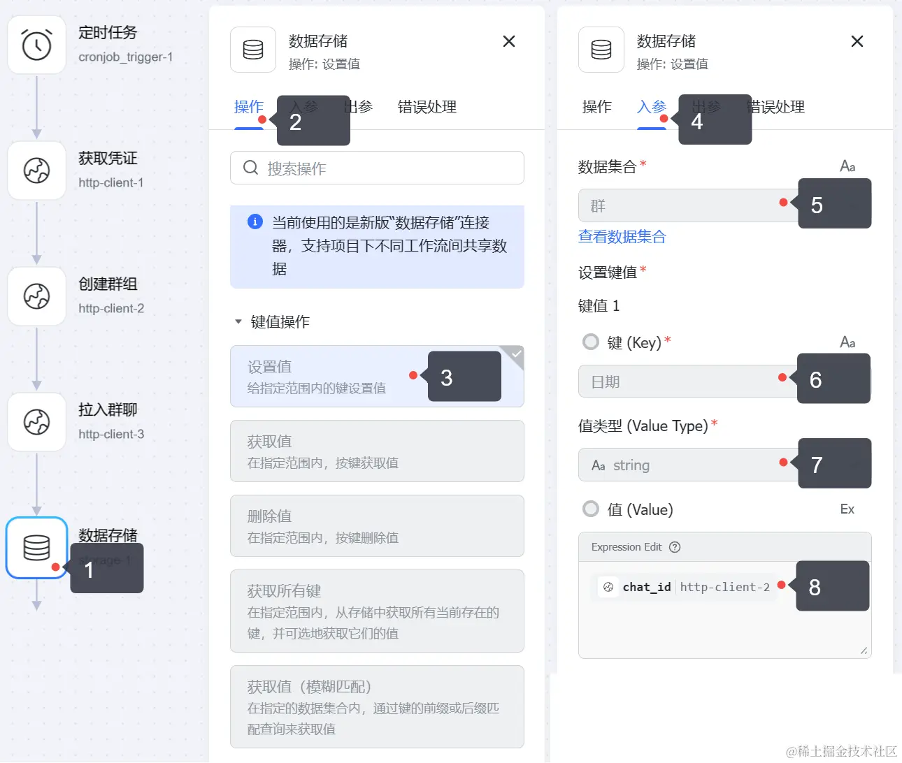 👇(定时触发不再赘述)获取上一个工作流储存的群ID