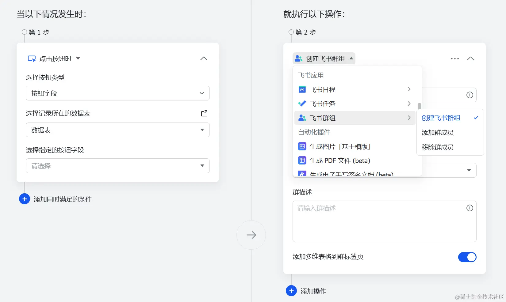 👇多维表格原生功能只支持创建群组、无法解散群组。