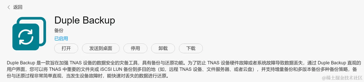 Duple Backup,通过直观的源和目标设置,可以将TNAS卷中任意的文件数据备份到本地其它卷、iSCSI磁盘或云端,并支持双端数据同步和回滚。