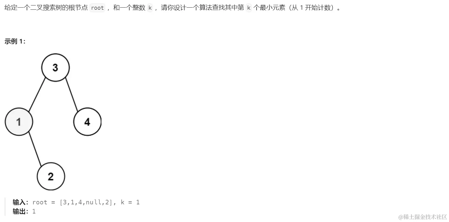 对于二叉搜索树,只需要按照中序遍历,即可从小到大进行输出,所以找到第K小的元素,实际上就是返回第K次访问的元素即可。