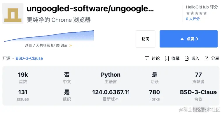 该项目是一个移除了 Chrome 浏览器中谷歌服务的浏览器,保留了完整的浏览器功能。
