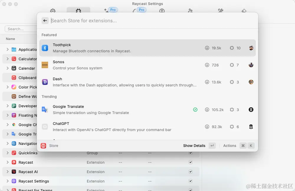 - 插件: 安装第三方插件,增加Raycast的功能性。