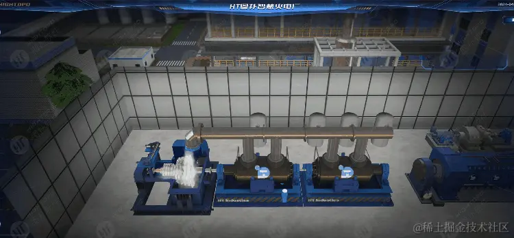 HT 不仅支持全厂级的数字孪生展示,还支持局部机组、设备的运行可视化。