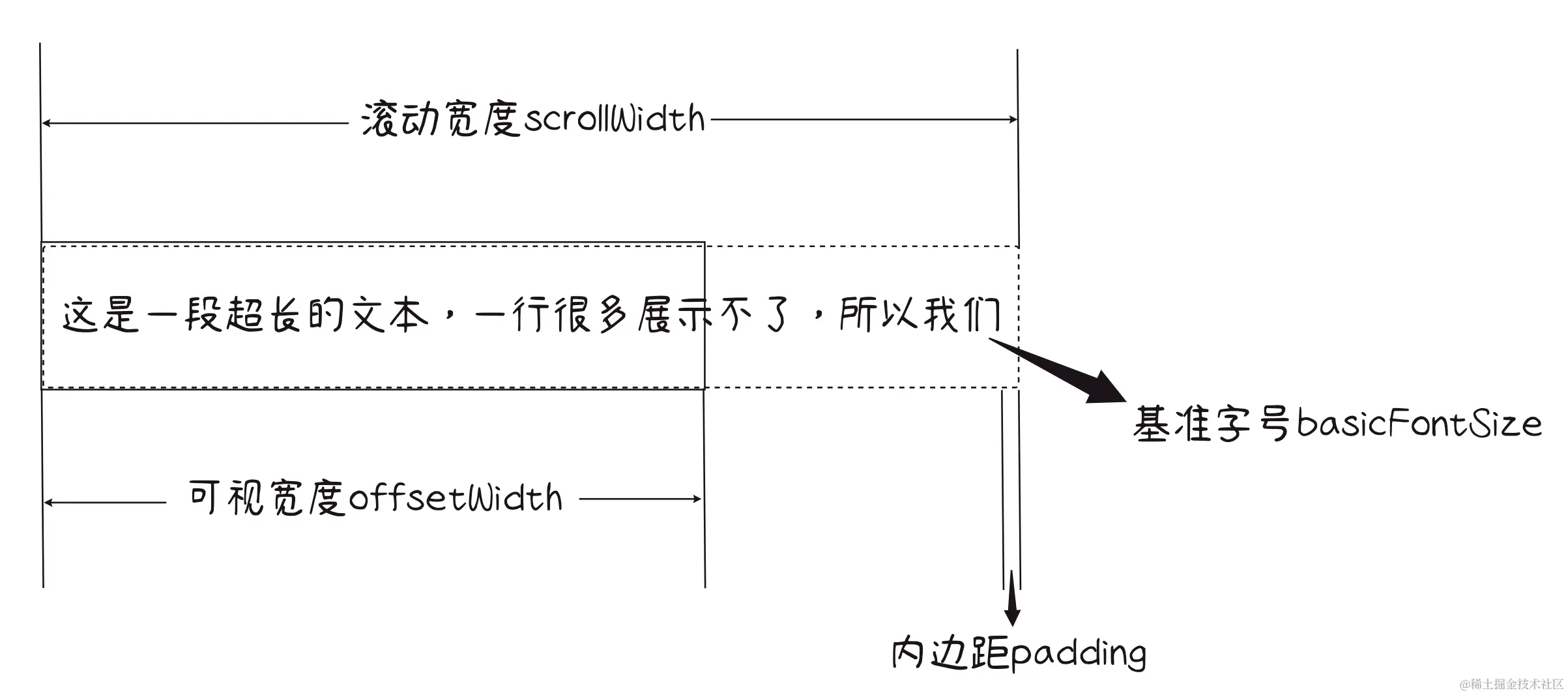 公式 =(可视宽度 - 内边距 * 2)/ 滚动宽度 * 基准字号
