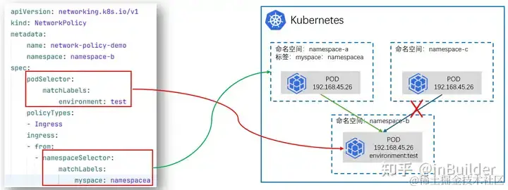 - 跨命名空间: 网络策略不仅可以在同一命名空间内控制流量,还可以跨命名空间进行管理,提供跨租户的隔离。