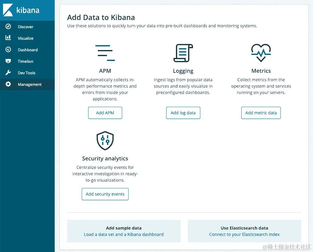 图 7-8:Kibana 的主屏幕