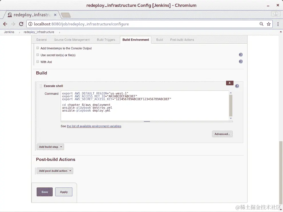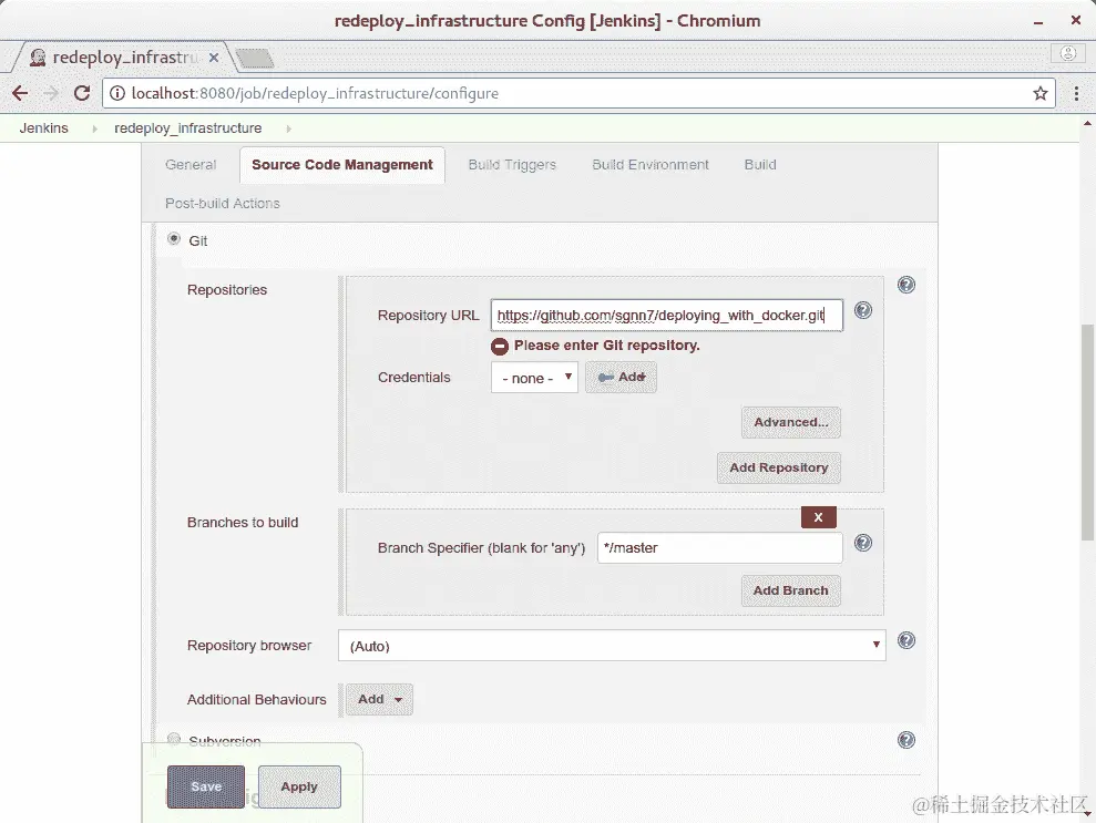 自构建:如前所述,当配置更改时,您可以让 Jenkins 构建自己的映像,并重新部署自己。