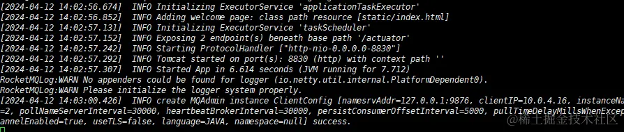 执行成功后,查看启动日志: