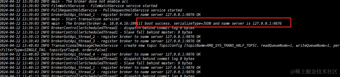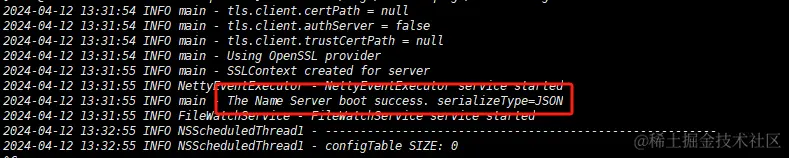 启动日志和启动Name Server日志在一个文件夹里面。查看启动日志信息:
