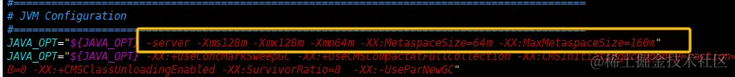 JAVA_OPT="${JAVA_OPT} -server -Xms128m -Xmx128m -Xmn64m -XX:MetaspaceSize=64m -XX:MaxMetaspaceSize=160m"