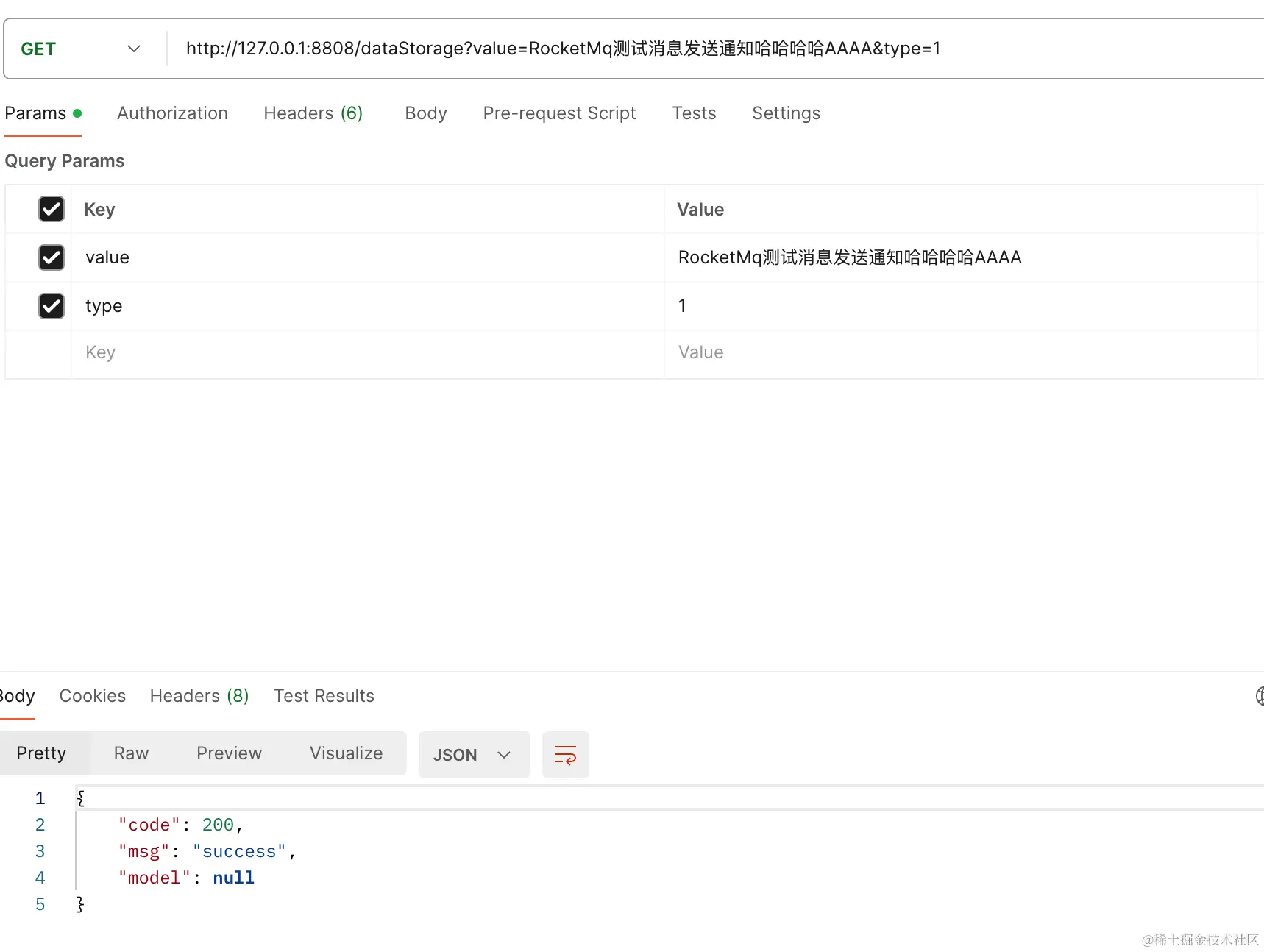 启动项目,通过postman调用接口: