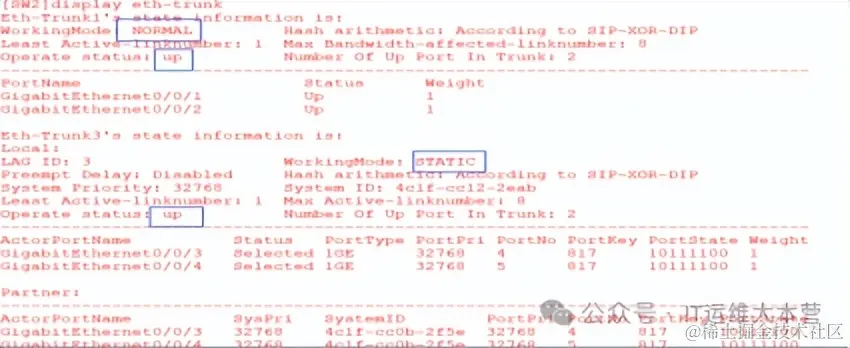 [SW2-Eth-Trunk3]port link-type trunk (配置为trunk接口)