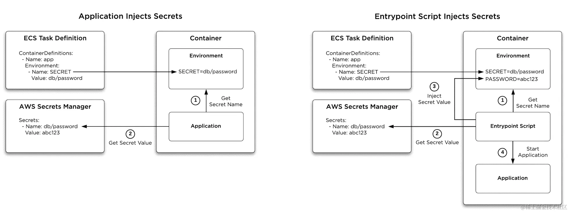 有了样本应用程序的凭据存储位置,您学会了如何在容器中使用入口点脚本,在容器启动时动态获取和注入秘密值,使用简单的 bash 脚本与 AWS CLI 结合,将一个或多个秘密值作为变量注入到内部容器环境中。尽管这种方法被认为比应用程序直接获取秘密不太安全,但它的优势在于可以应用于支持环境变量配置的任何应用程序,使其成为一个更加通用的解决方案。