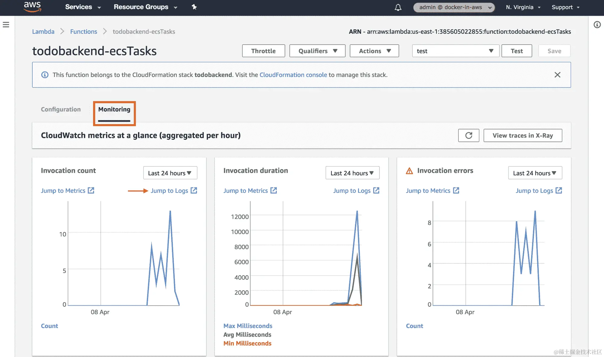 在上面的示例中,您配置每个任务定义使用 IAM 任务角色通过TaskRoleArn属性,该属性引用了您在上一个示例中创建的ApplicationTaskRole资源。接下来,您添加新入口脚本在您的 Docker 镜像中期望的SECRETS环境变量,并删除先前从 AWS Secrets Manager 服务中检索的MYSQL_PASSWORD和SECRET_KEY变量。请注意,您需要包括一个名为AWS_DEFAULT_REGION的环境变量,因为这是 AWS CLI 所需的,以确定您所在的区域。