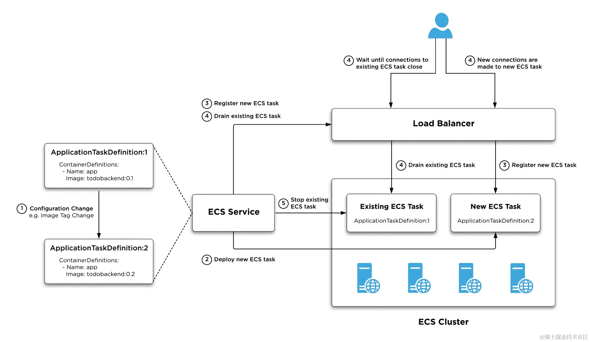 支持自定义资源的资源将首先被创建,同时将应用于 ECS 任务定义的更改。