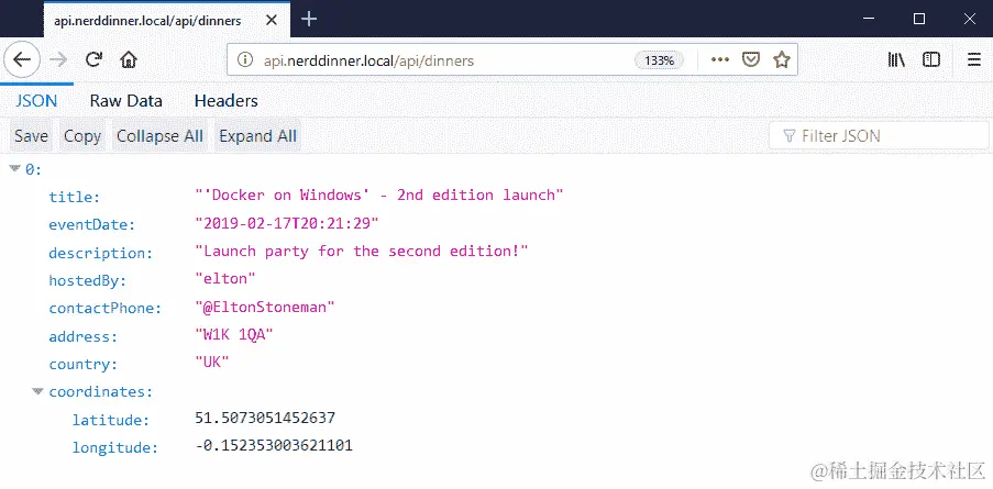 NerdDinner 网站的新版本在 Docker 中运行的命令是: