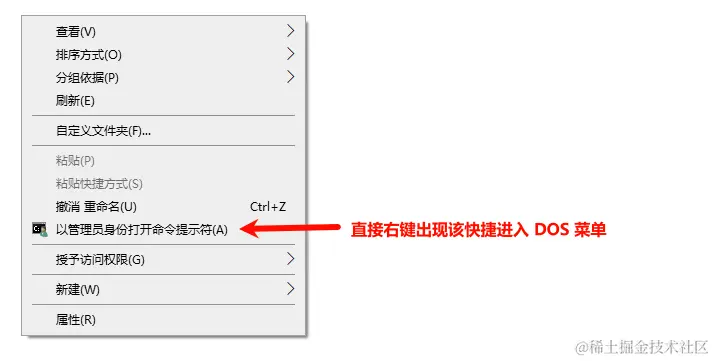 有了以上方式,进入 DOS 就比较方便,可以随意在一个软件的目录点击右键,然后选择该菜单快捷进入 DOS 命令行模式。下面提供两种方法实现: