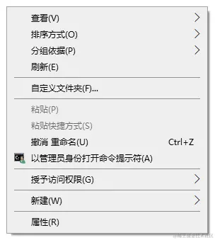 把以上代码拷贝到一个文本,然后粘贴,随后修改文本的后缀名为 .reg,然后,双击这个文件导入,重启电脑即可在任意目录点击鼠标右键,可以看到这个菜单:以管理员身份运行,可能是注册表的字数限制,我导入之后发现命令行三个字是不显示的,不过不影响使用,效果如上面的图片所示。这个 .reg 我以压缩包的方式提供,获取方式在文章结尾。