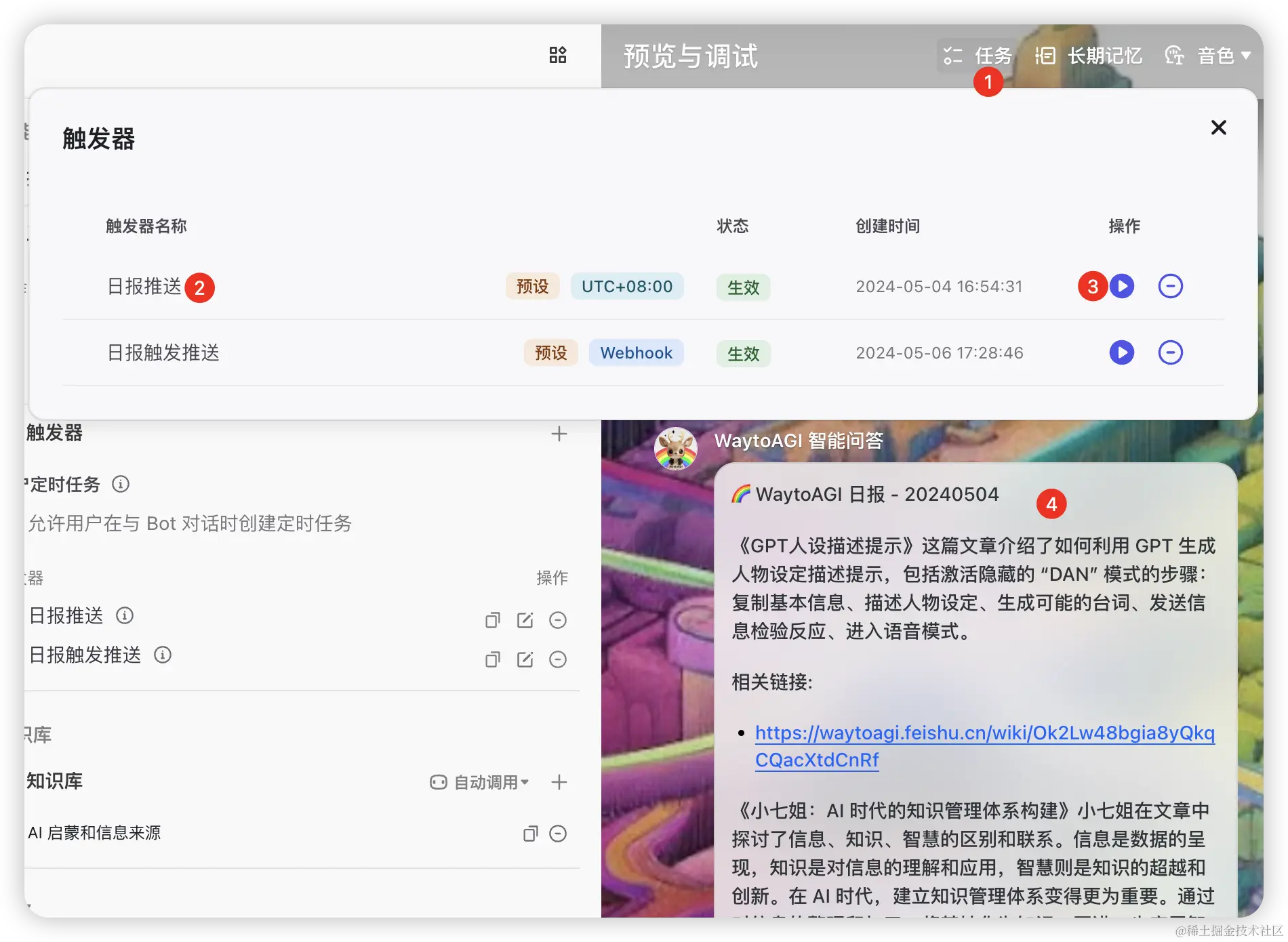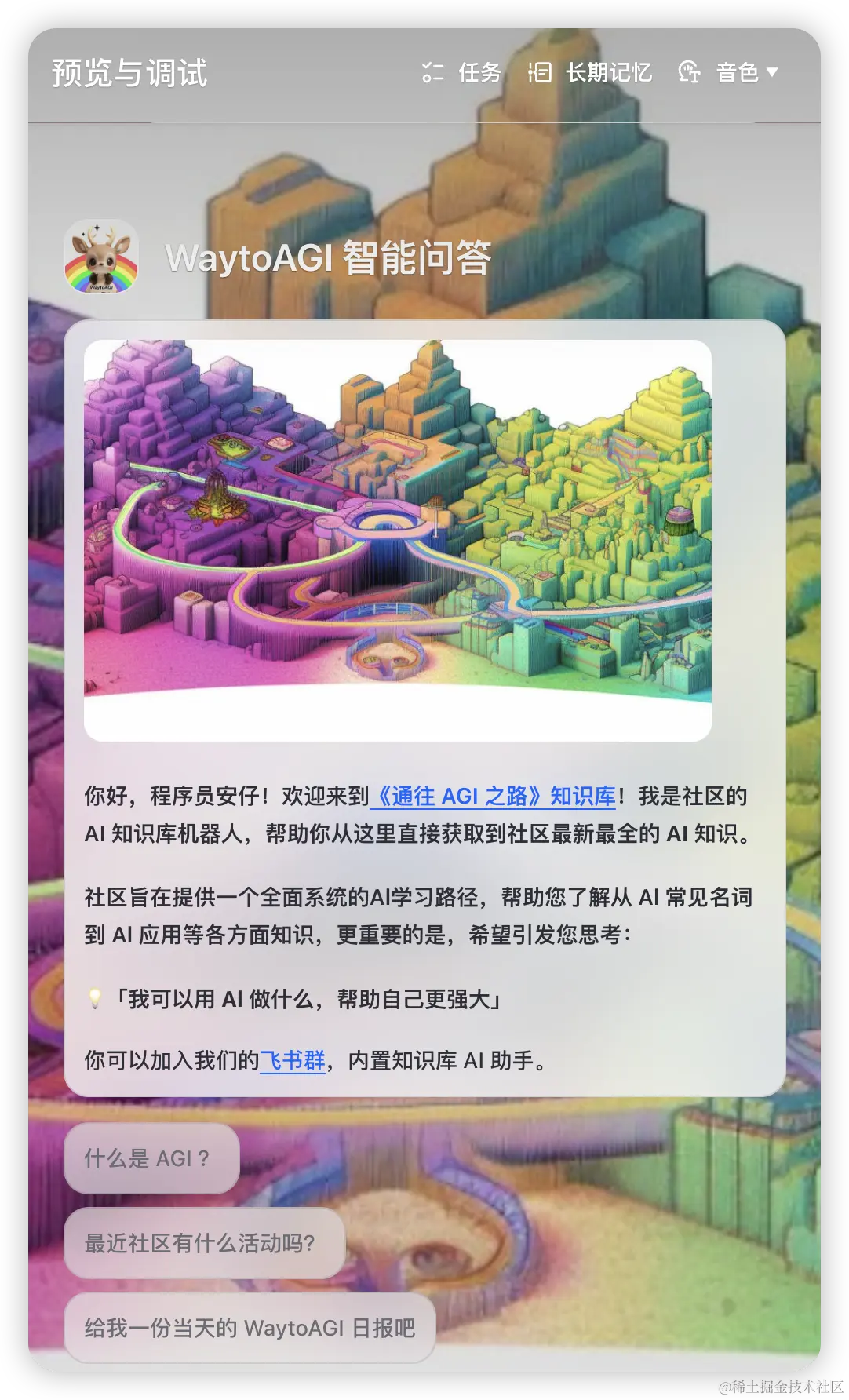 这不,突然想起来我也是 WaytoAGI 开源社区的作者,咦,那我何不尝试一下基于 Coze 帮社区做一个运营机器人?